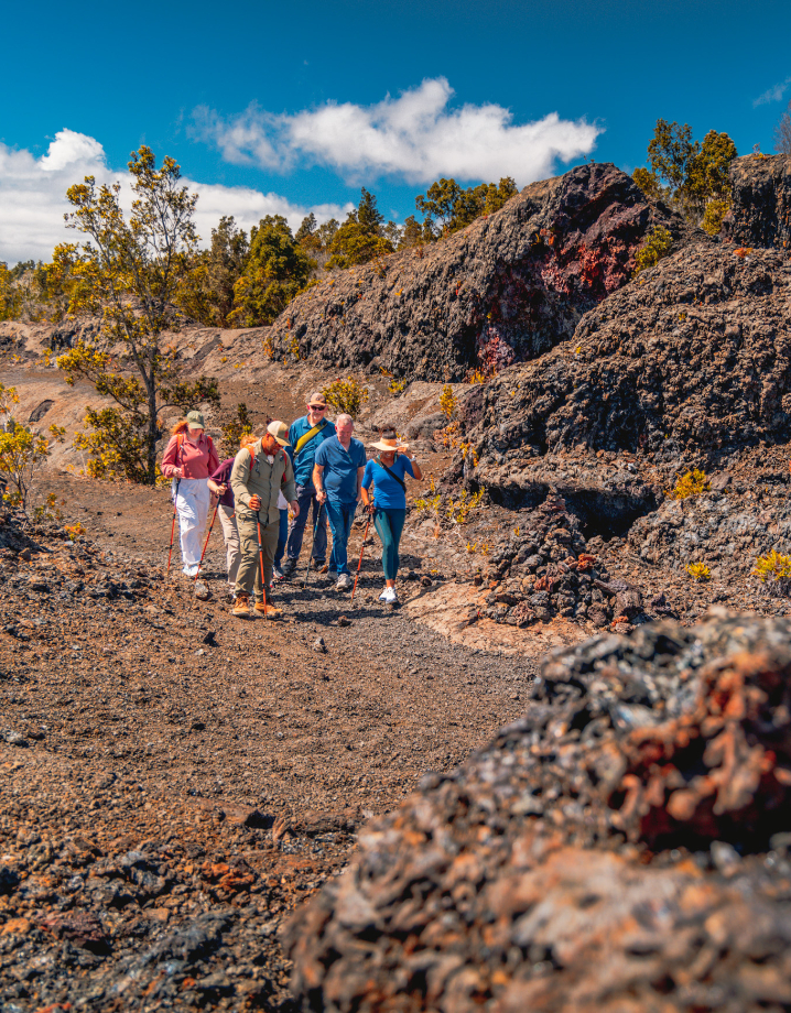On this adventure, you will hike up to 3 miles and see some of our favorite sights. Traverse ancient lava fields and witness the power of active volcanic landscapes that continue to shape the island. Whether you’re standing at the rim of Halemaumau Crater, hiking through steam vents and craters, or learning about native flora and fauna, each moment offers a deeper connection to the natural and cultural wonders of this UNESCO World Heritage Site.